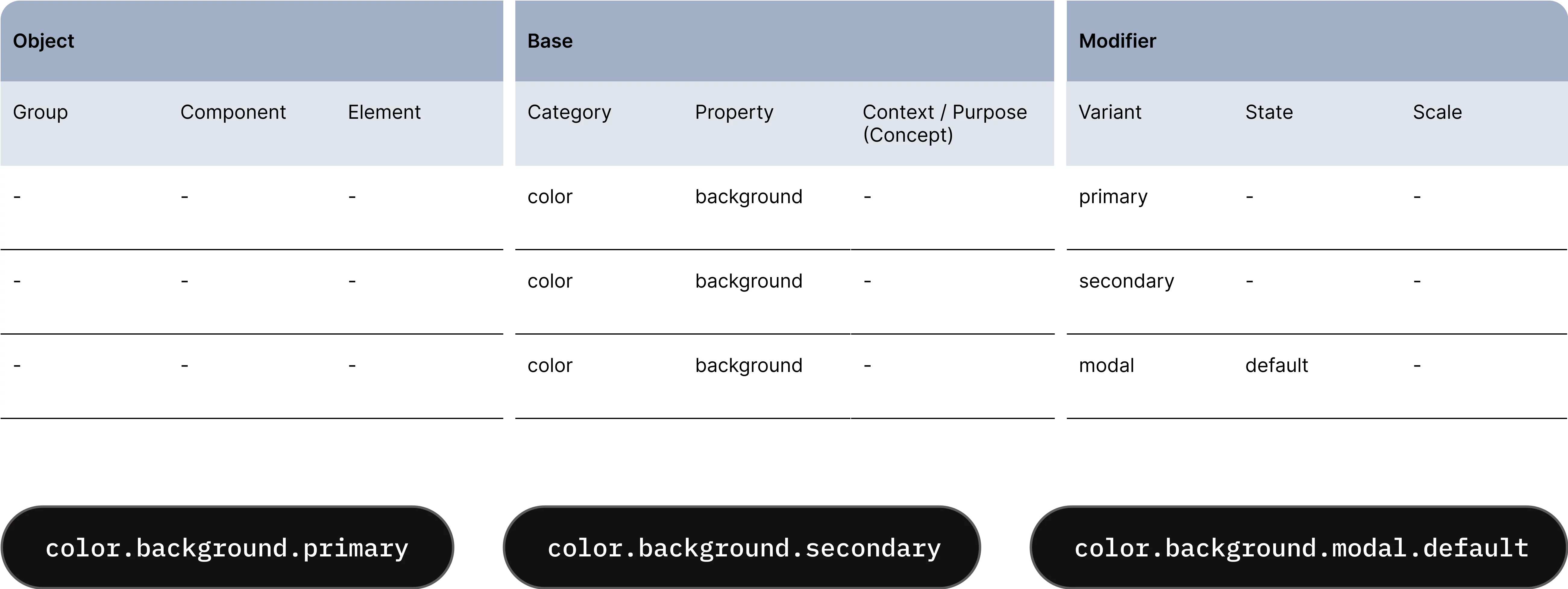 We found that most teams wanted tokens to be clear and recognisable at a glance — especially for people who weren’t yet familiar with how tokens worked. This clarity also made it easier for Design and Engineering to cross-reference tokens during QA, keeping everyone on the same page.